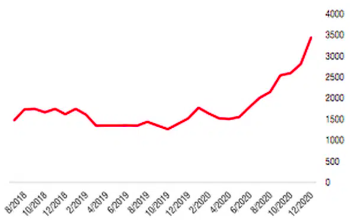 | Global container shipping rates. Source: World Container Index theo Drewry. |