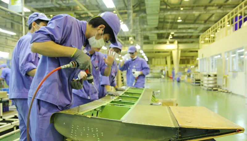 | Production of aircraft's components at MHI Aerospace Vietnam at Thang Long Industrial Park. Photo: Pham Hung |