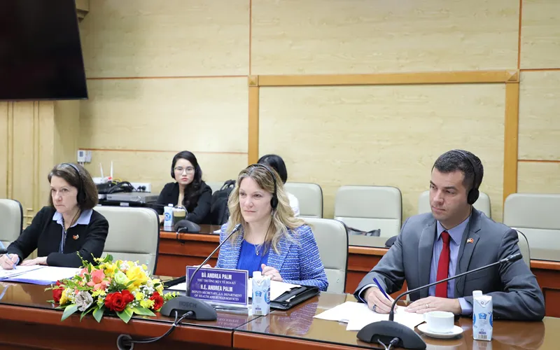 | Deputy Secretary of the US Department of Health and Human Services (HHS) Andrea Palm and US CDC Vietnam Country Director Eric Dziuban at the meeting with Vietnamese health officials. Photo: MOH |