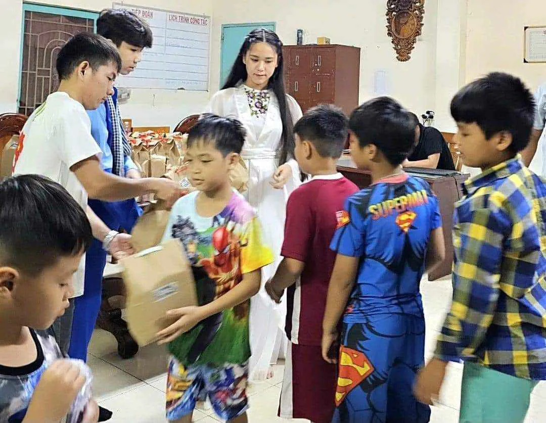| Bella Vu (center) organizes Mid-Autumn Festival for children in need. |