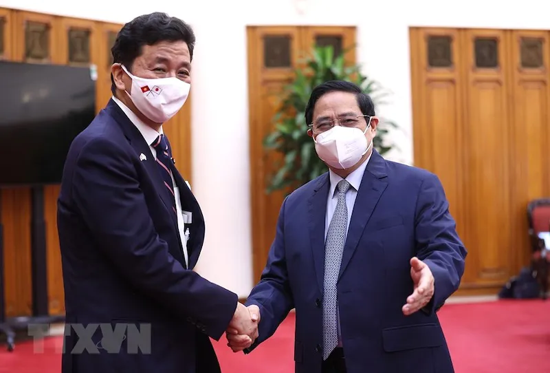 | Japanese Defence Minister Kishi Nobuo (L) and Vietnamese Prime Minister Pham Minh Chinh (R) |