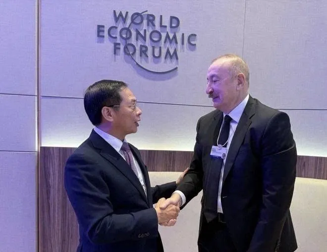 Vietnam's Deputy Prime Minister Bui Thanh Son (L) meets Azerbaijan's President Ilham Aliyev in Davos. Photo: VNA