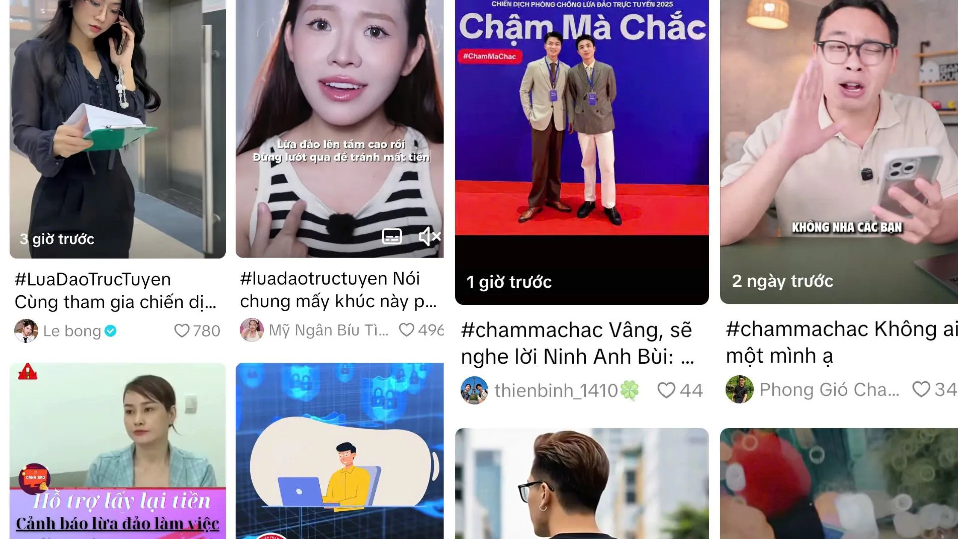 The campaign features two hashtag challenges, #ChamMaChac (Slow but Sure) and #LuaDaoTrucTuyen (Online Scam), encouraging users to share experiences and tips on scam prevention and online safety.
