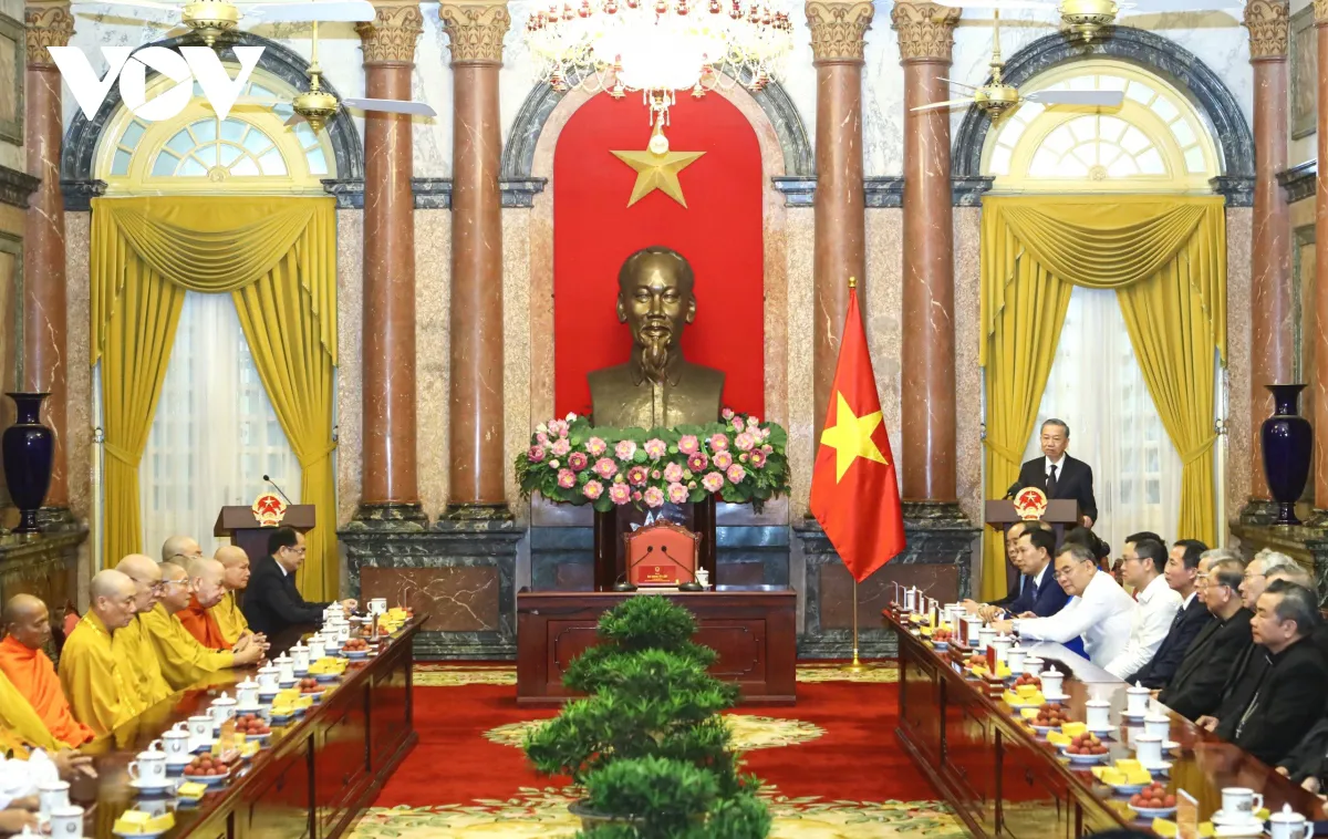 At the meeting with more than 60 representatives of 43 recognized religious organizations, State President To Lam reviewed the contributions of religious organizations to the cause of national construction and development since the birth of the Democratic Republic of Vietnam (now the Socialist Republic of Vietnam). He said that the Communist Party of Vietnam and the State have always respected people’s right to freedom of belief and religion, and regarded it as a legitimate need of a section of the population.
