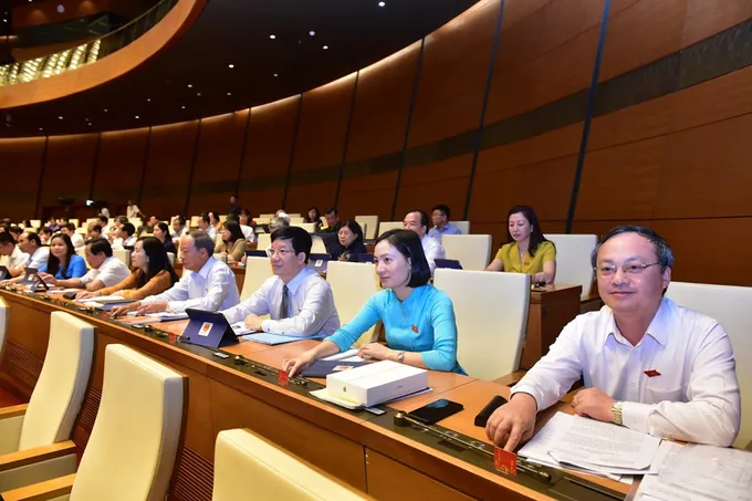 | National Assembly delegates vote at the ratification session of ILO Convention No.105. Photo: Hoang Phong |