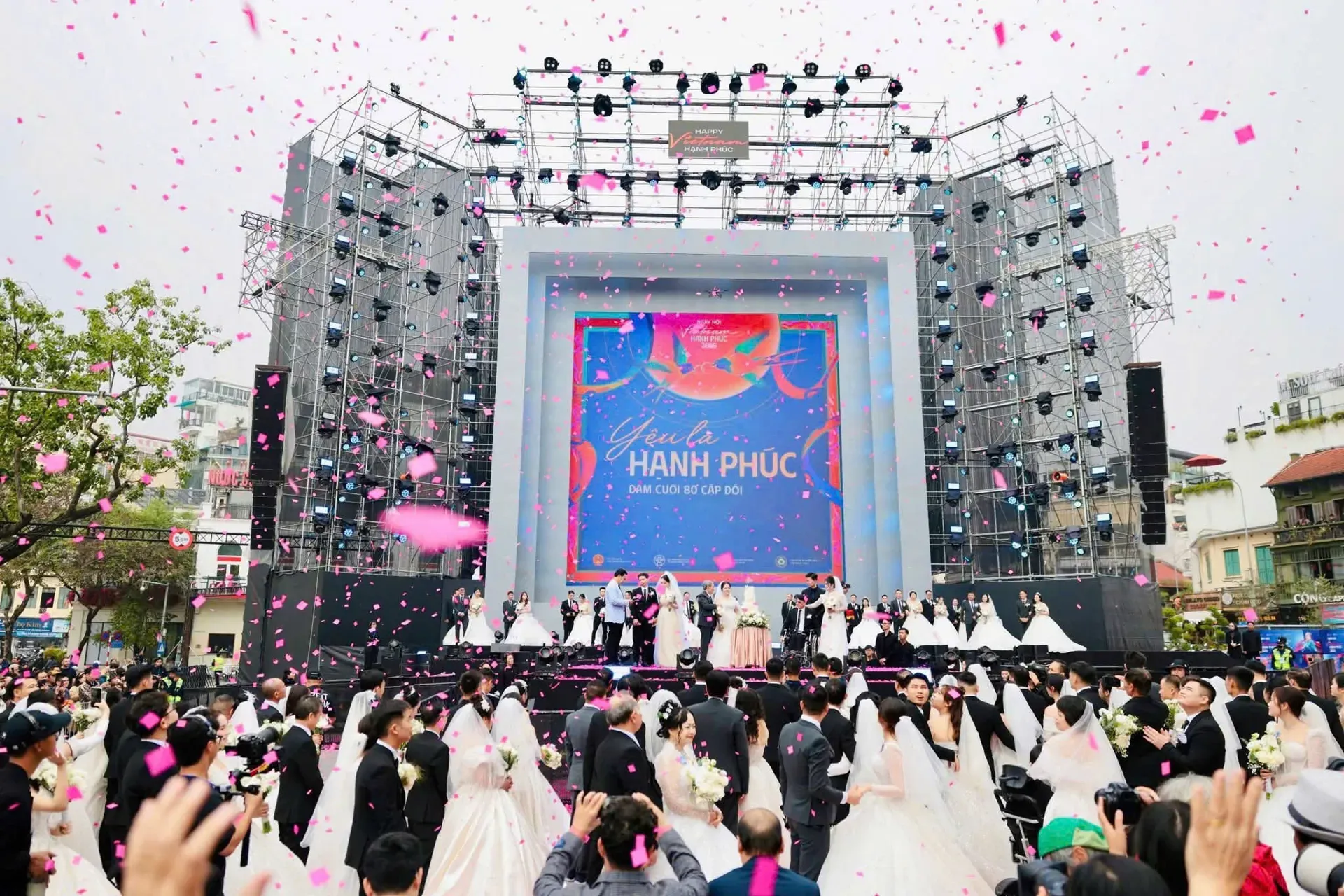 80 couples take part in the "A day for us - Love is happiness" wedding ceremony at the "Vietnam Happy Fest" held in Hanoi in early December. Photo: Anh Kiet/The Hanoi Times