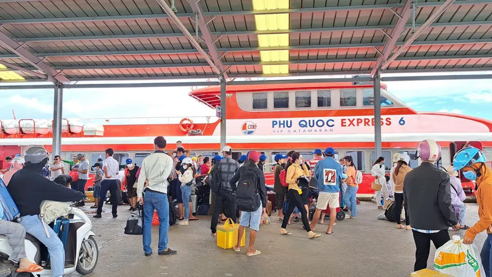 | People board an express boat to Phu Quoc Island on July 30. Photo: Huu Tuan/The Hanoi Times |