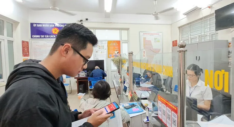 | A citizen scans QR codes in the Dong Tam Ward People's Committee to complete administrative processes. Photo: The Hanoi Times |