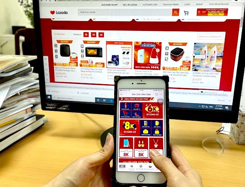 | A Vietnamese consumer is using online payments to make purchases. Photo: Khanh Huyen |
