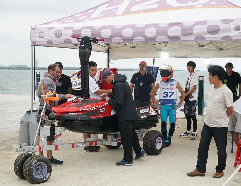 | An Aquabike team makes a final check of their vehicle before the race. Photo: sggp.org.vn |