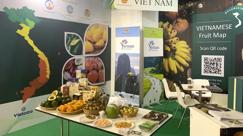 | Vietnamese fruits are introduced at a trade fair in Italy. Photo: The Embassy of Vietnam in Italy |