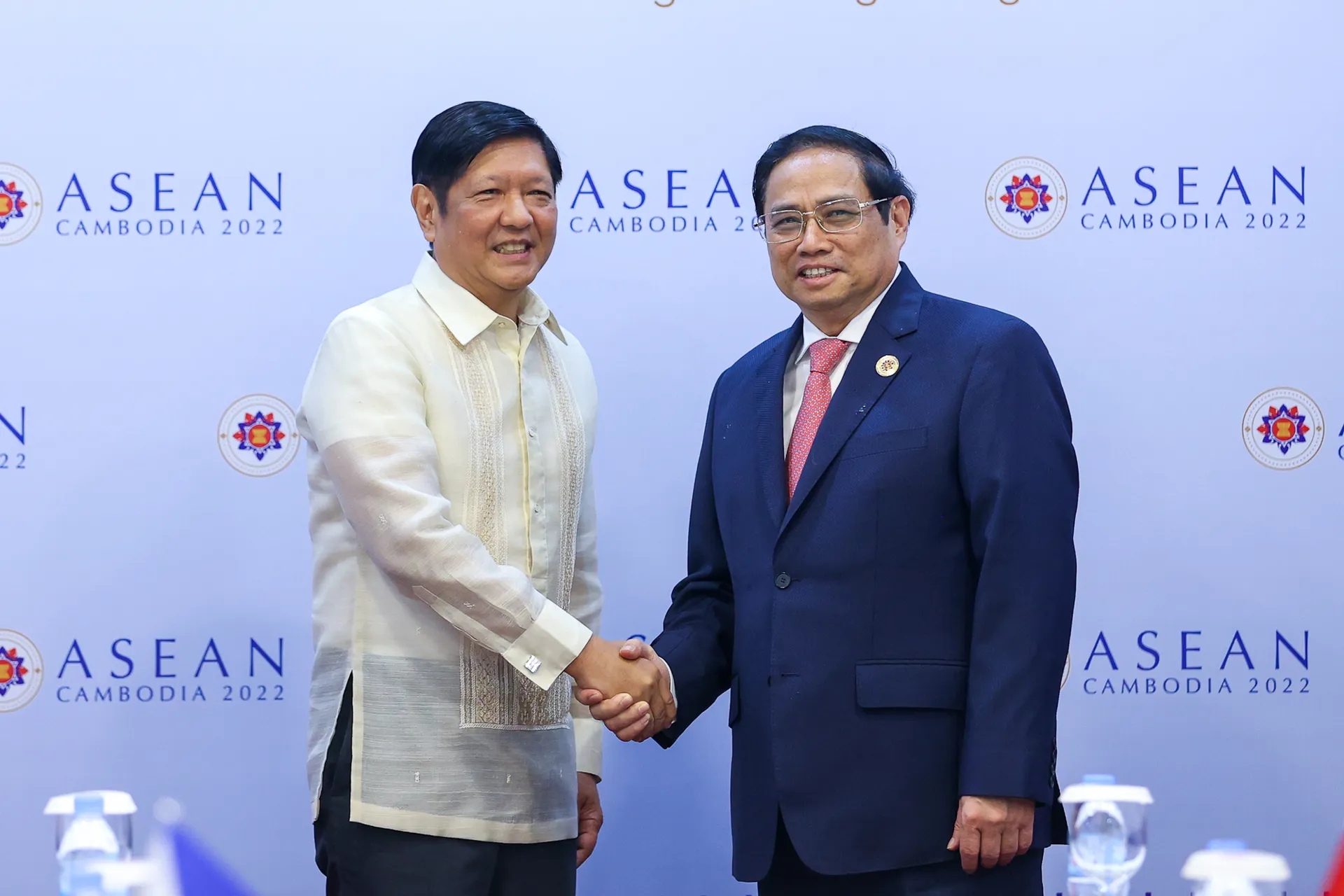 | PM Chinh meets with Filipino President Ferdinand Romualdez Marcos in Cambodia. |