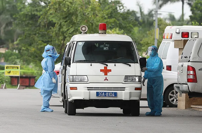 | An ambulance at the National Hospital for Tropical Diseases in Hanoi. Photo: VnExpress |