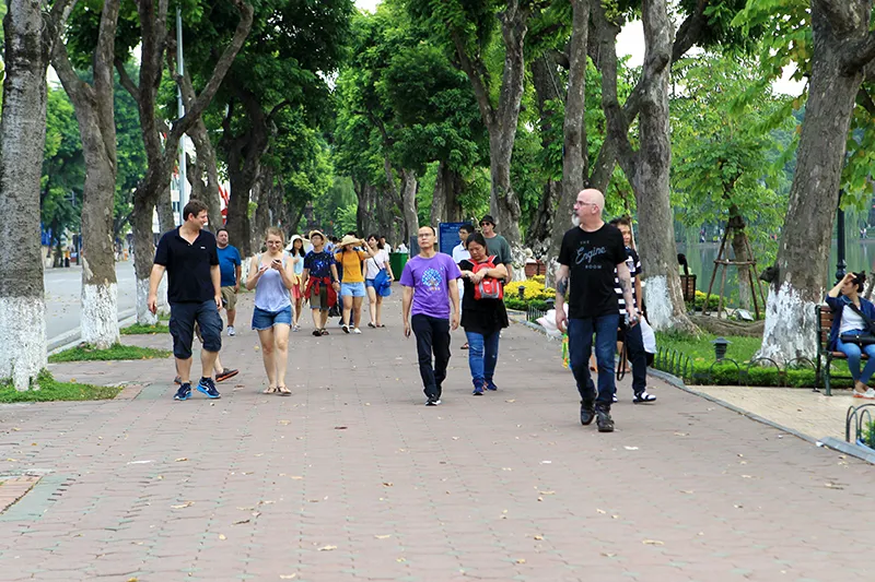 Many international tourists have become familiar with the walking area around Hoan Kiem Lake and its surroundings in downtown Hanoi, Vietnam. Photo: Pham Hung/ The Hanoi Times |