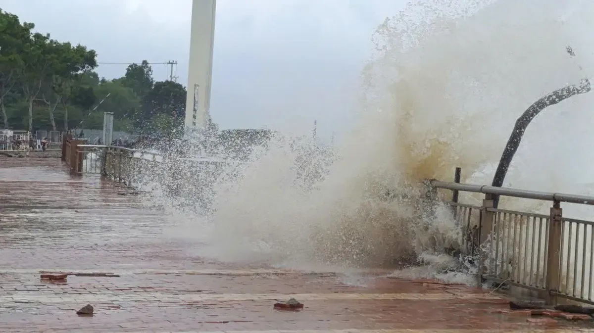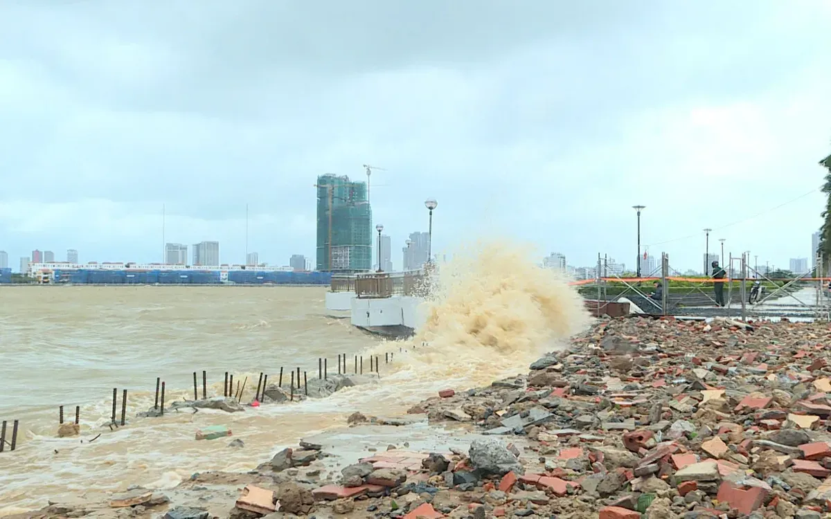 Waves up to 6m high batter the Han River embankment in the central city of Danang, tearing up sidewalks as Fengshen nears Vietnam's coast.