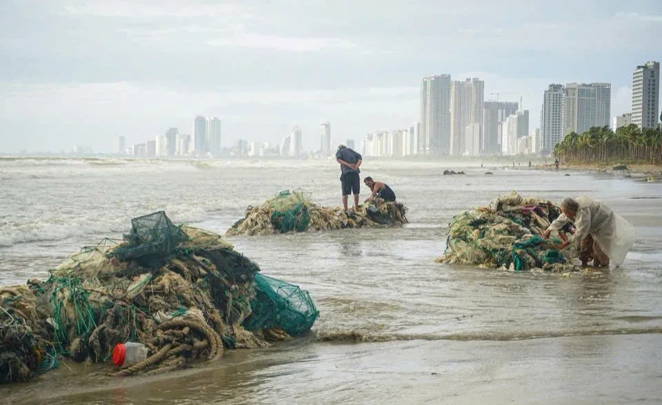 Fishermen in the central city of Danang collect nets damaged by Typhoon Kalmaegi. Photo: baodanang.vn