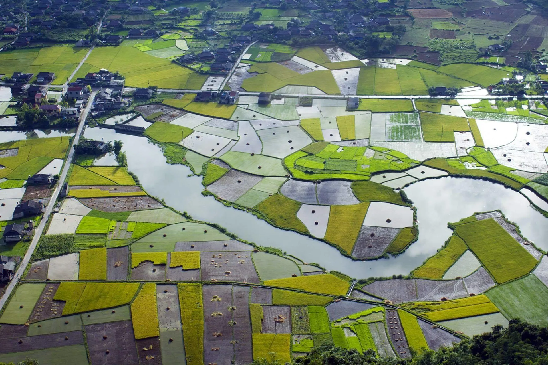 From above, the rice fields of Quynh Son Village unfold like a gorgeous green tapestry. Photo: Dinh Duong