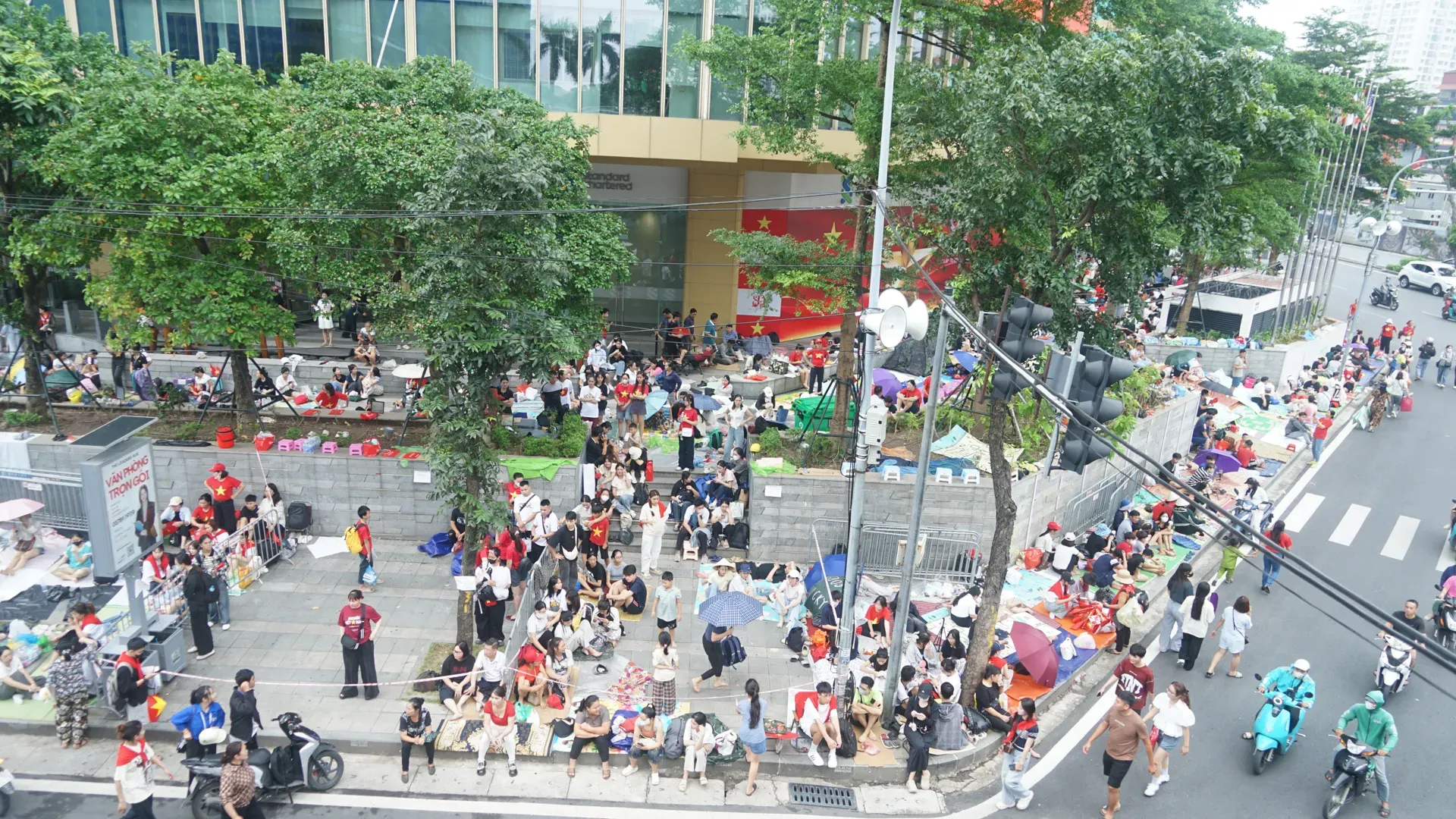 “At first, we planned to stay in a hotel, but we failed. So we decided to camp out on the sidewalk of Kim Ma Street,” she said with a smile. “It’s our unique way of expressing our patriotism.”