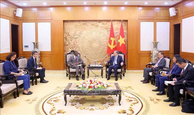 General Secretary To Lam meets Lazare Eloundou Assomo, Director of the UNESCO World Heritage Center, on May 20. Photo: Vietnam News Agency