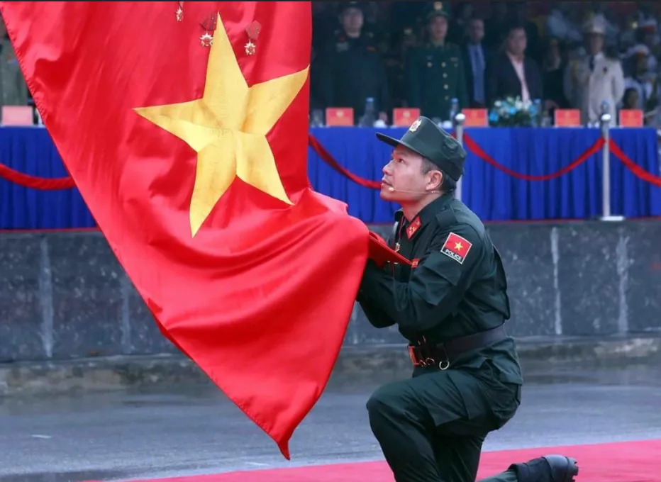| Senior Lieutenant General Nguyen Van Nam, Commander of Vietnam’s Formed Police Unit No.1, pledges allegiance to the flag. |
