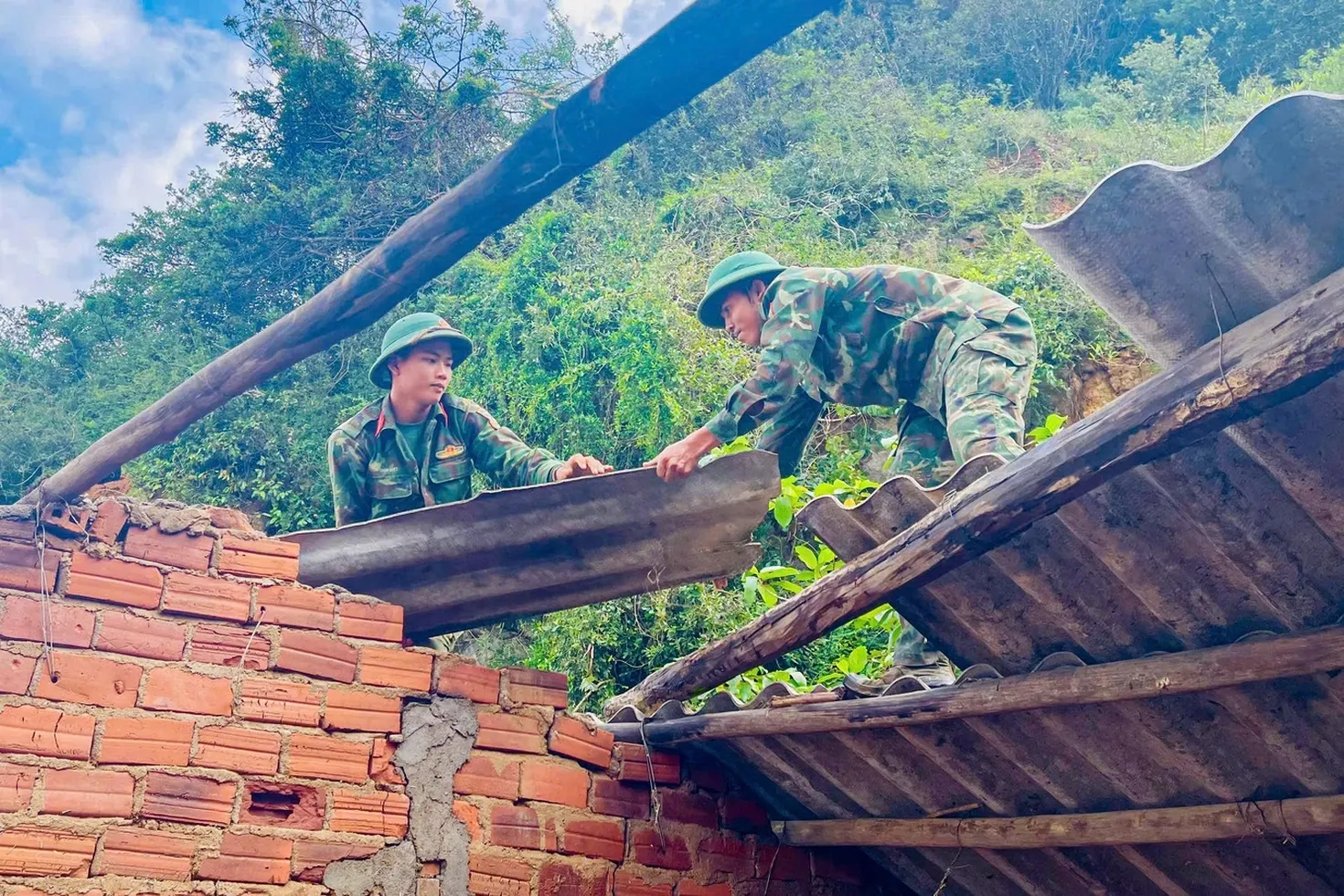 Soldiers help repair houses for flood-affected people in the Central Highlands province of Dak Lak. Photo: Van Vien
