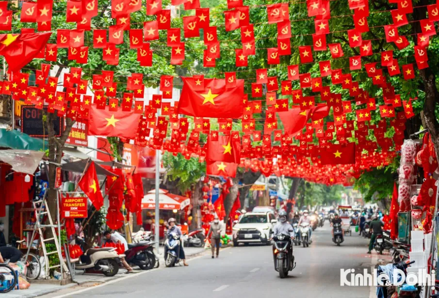 The streets of Hanoi are brightly decorated to celebrate the upcoming major holidays. Photo: Kinh te & Do thi Newspaper