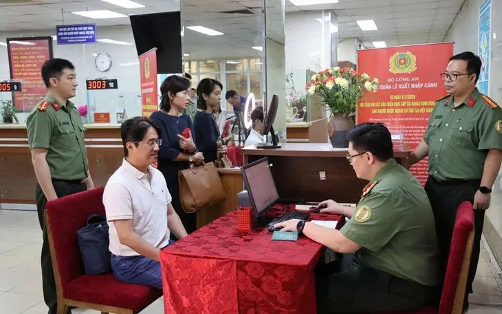 Officers from the Immigration Department process electronic identification account registrations for foreigners. Photo: VGP