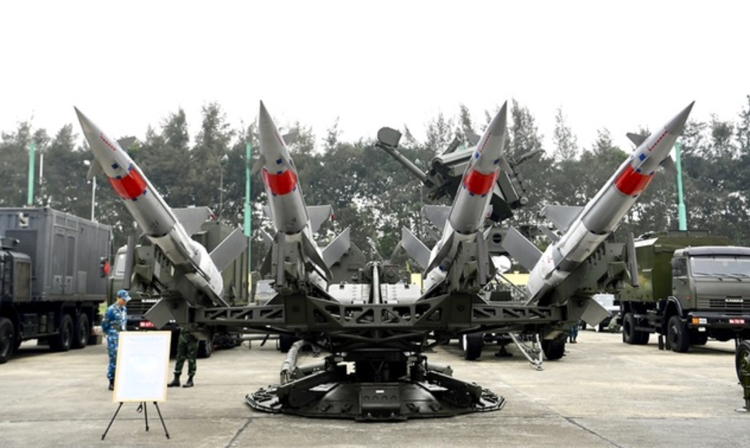 | Launcher and missiles of the S-125-2TM air defense system at the Vietnam International Defense Expo 2022. Photo: Nhat Bac |