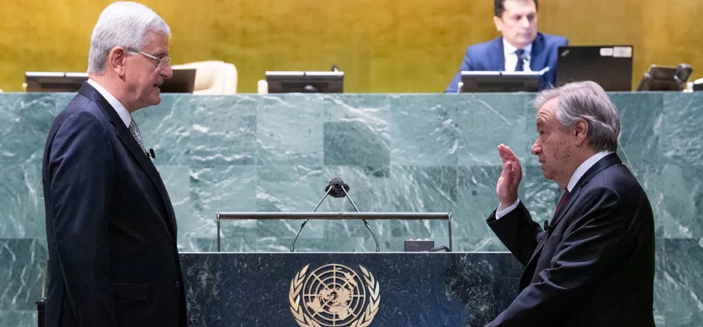 | António Guterres (right) takes the oath of office for his second five-year term as Secretary-General of the United Nations. Photo: UN |