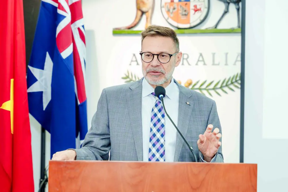 | Andrew Goledzinowski, Australia’s Ambassador to Vietnam, speaks at the launch of the support program on May 22. Photos: Embassy of Australia in Hanoi |