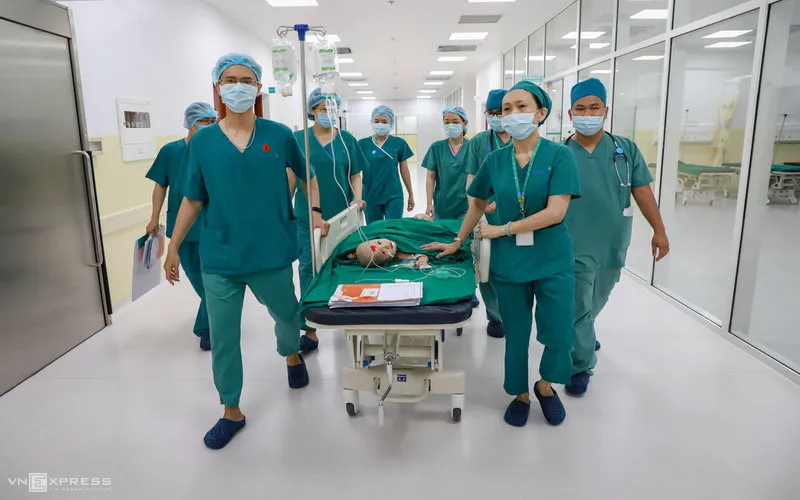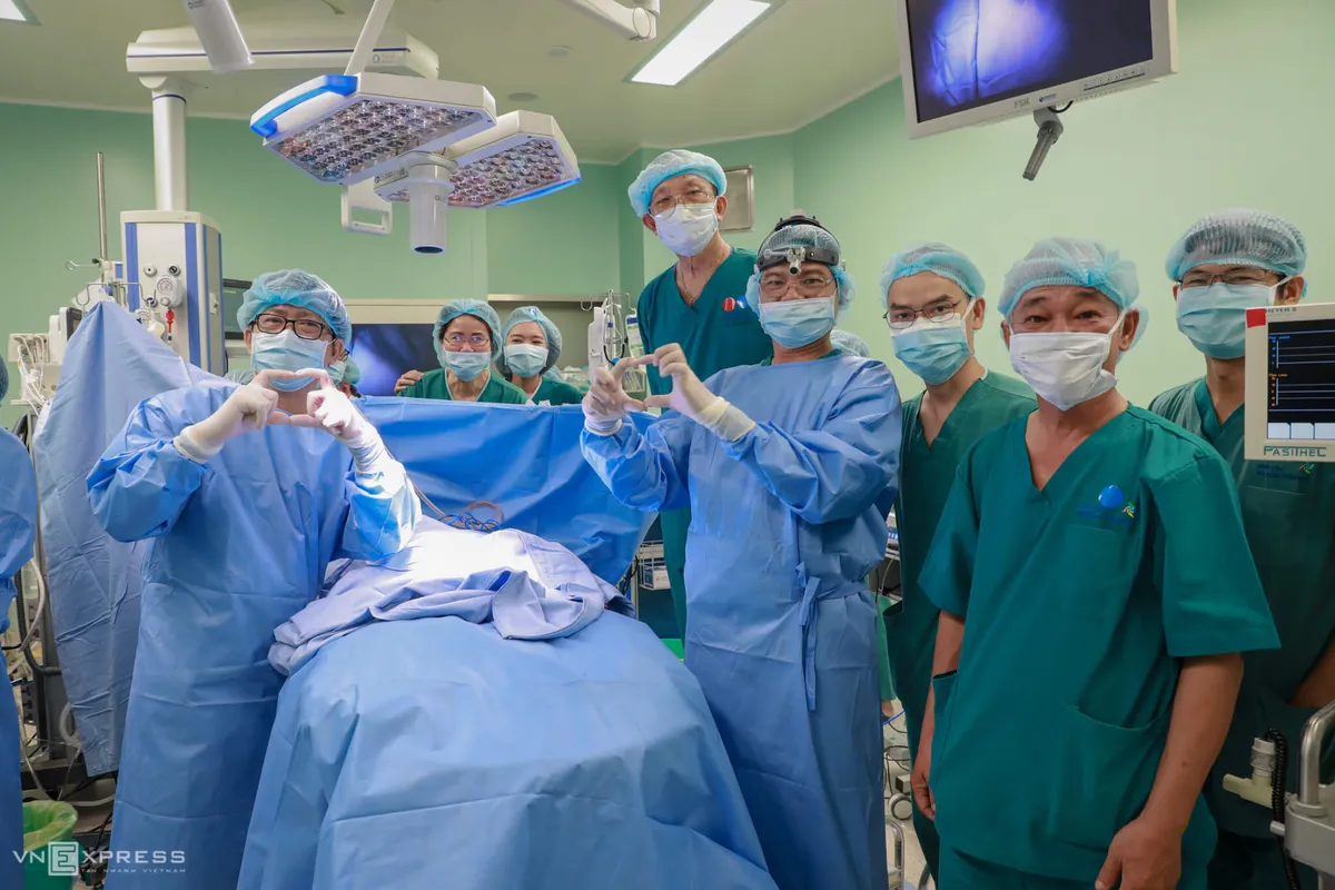 | The surgery ended successfully at around 6:45 pm. The two girls were then transferred to a care unit in HCMC Children Hospital to be under observation. Photo: VnExpress |