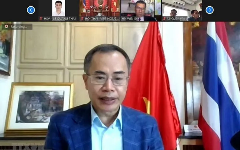Vietnamese Ambassador to Thailand Phan Chi Thanh speaks during the webinar. Photo: VNA |