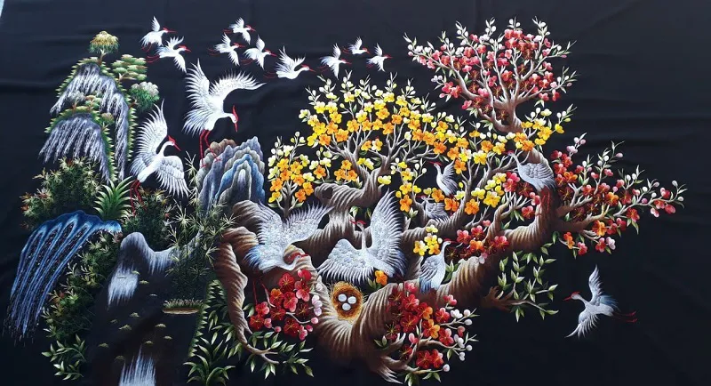 Quat Dong embroidery profession today has undergone miraculous changes. Some large embroidery workshops in the village now employ up to 200 craftspeople at a time. Their delicate and colorful embroidery paintings are often ordered by traders from abroad, or sold at large showrooms in big cities like Hanoi, Ho Chi Minh and other tourism cities such as Nha Trang, Da Nang, among other cities.