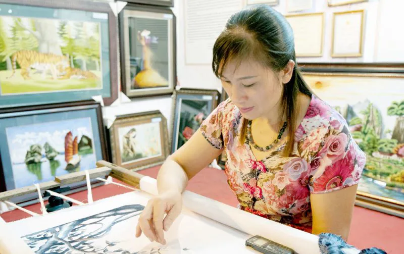 “Quat Dong embroidery painting is embroidered with two sides on thin chiffon material and used silk thread. Looking at the embroidery picture, the viewer cannot realize where the first stitch begins, and where the last stitch ends.”