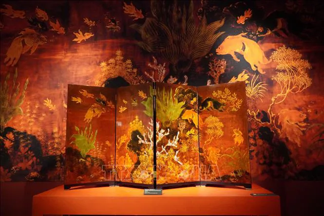 Ancient lacquer paintings on display at the exhibition. Photo: VNA