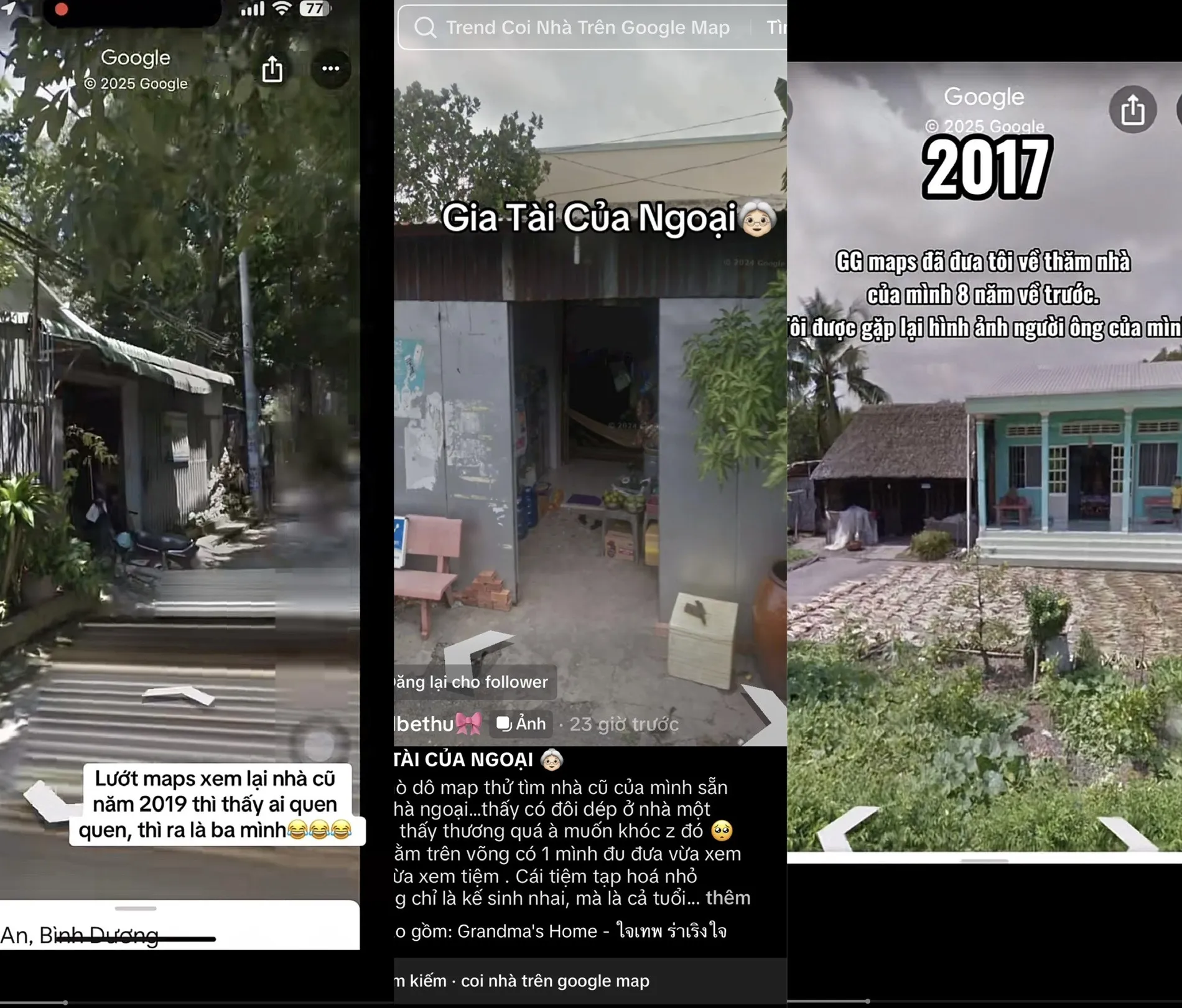 Vietnamese netizens share emotional memories of revisiting familiar places on Google Maps. Screenshots from TikTok