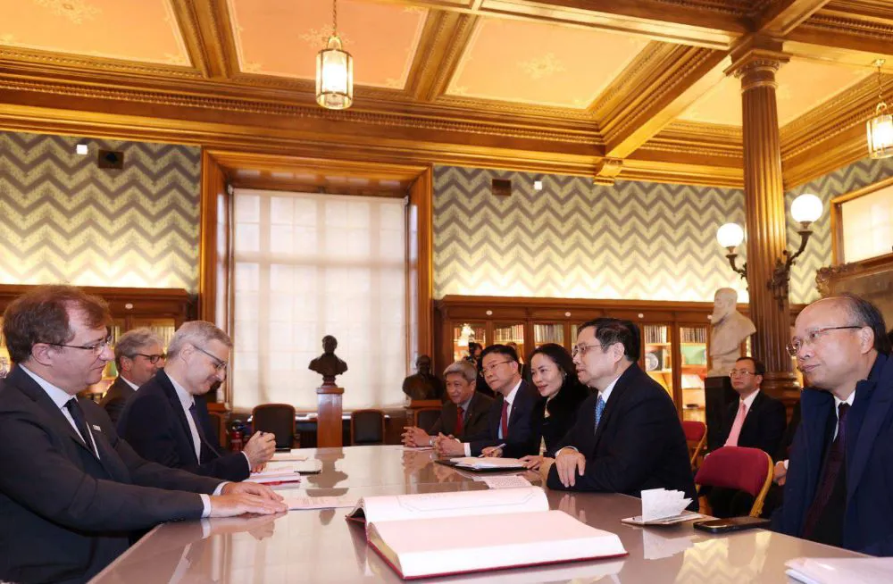| Vietnam’s Prime Minister Pham Minh Chinh (2nd right) meets representatives of Pasteur Paris Institute on Nov 4. Photos: VNA |