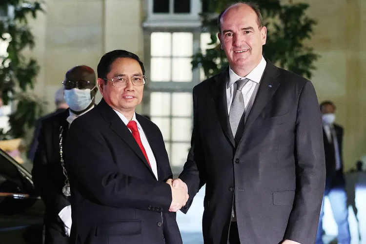 | Vietnam's Prime Minister Pham Minh Chinh and France’s Prime Minister Jean Castex in Paris. |