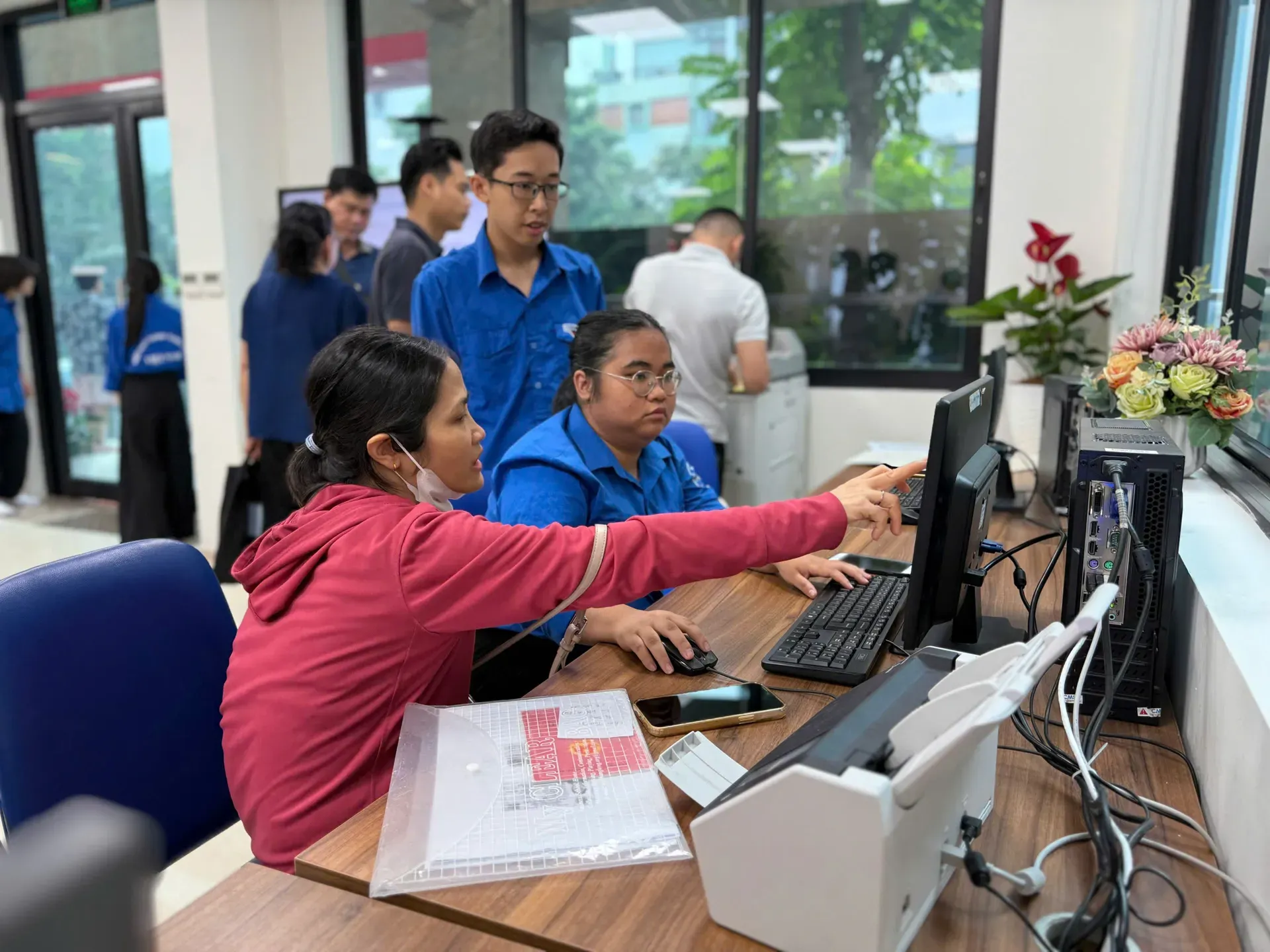 At the administrative service point in Dong Da Ward, Nguyen Mai Anh, Secretary of the ward’s Youth Union, explains how her seven-member volunteer team has been trained to handle both technical and interpersonal aspects of the job.