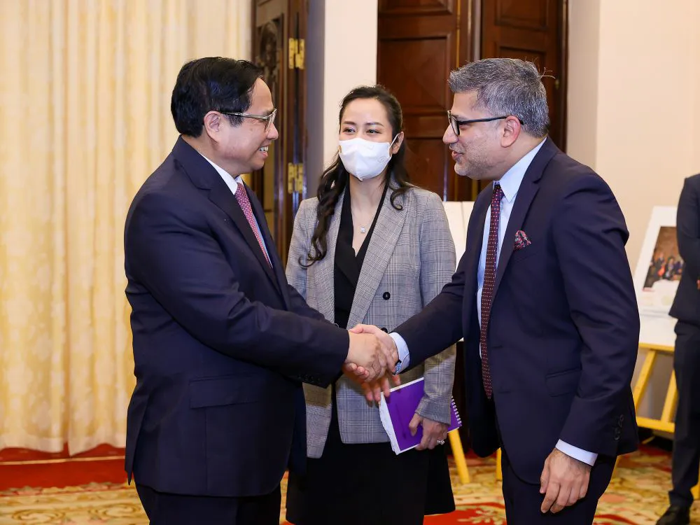 | PM Pham Minh Chinh (L) and Nitin Kapoor, Chairman and General Director of AstraZeneca Vietnam & Frontier Markets. |