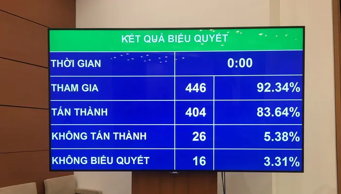 The revised law received endorsement from 404 out of 446 of National Assembly deputies present, representing an approval ratio of 83.64%.