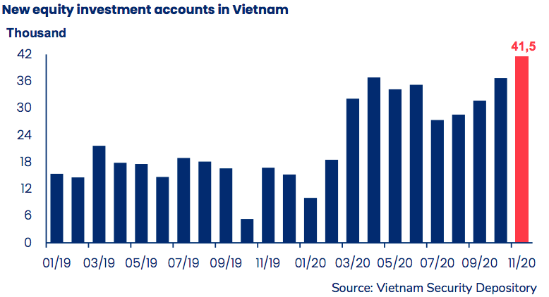 Vietnamese investors have opened 270,400 new accounts to invest in equities during the past 11 months, bringing the total to 2.7 million, with more than 300,000 accounts set to be opened this year.