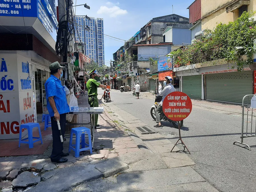 | A checking point at Quynh Mai Ward, Hai Ba Trung District in Hanoi. Photo: Linh Nguyen |