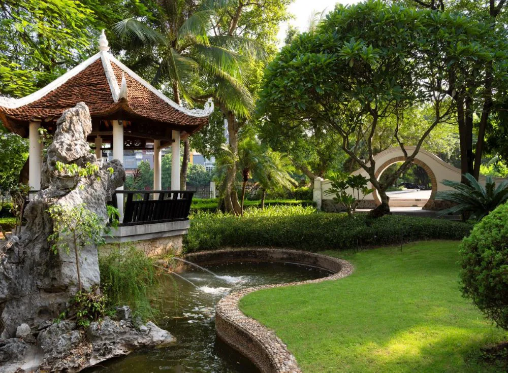 The tranquil garden of Sheraton Hanoi Hotel. Photo: Huong Nguyen |