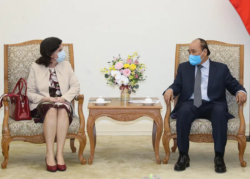 Cuban Ambassador to Vietnam Lianys Torres Rivera at a meeting with Vietnam’s Prime Minister Nguyen Xuan Phuc on April 17. Photo: VGP |