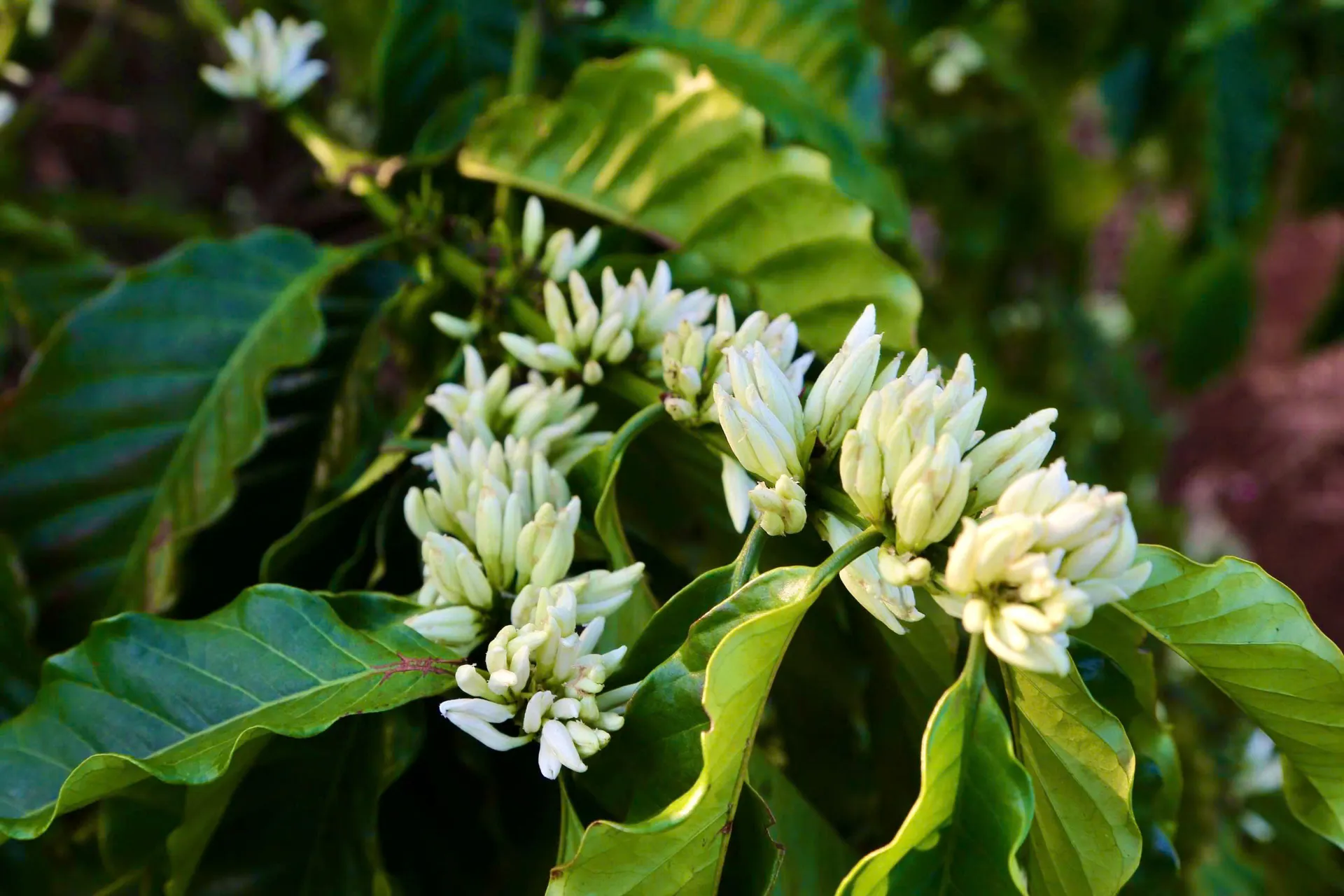 Clusters of pale green coffee buds mark the early stage of the bloom in the Central Highlands.