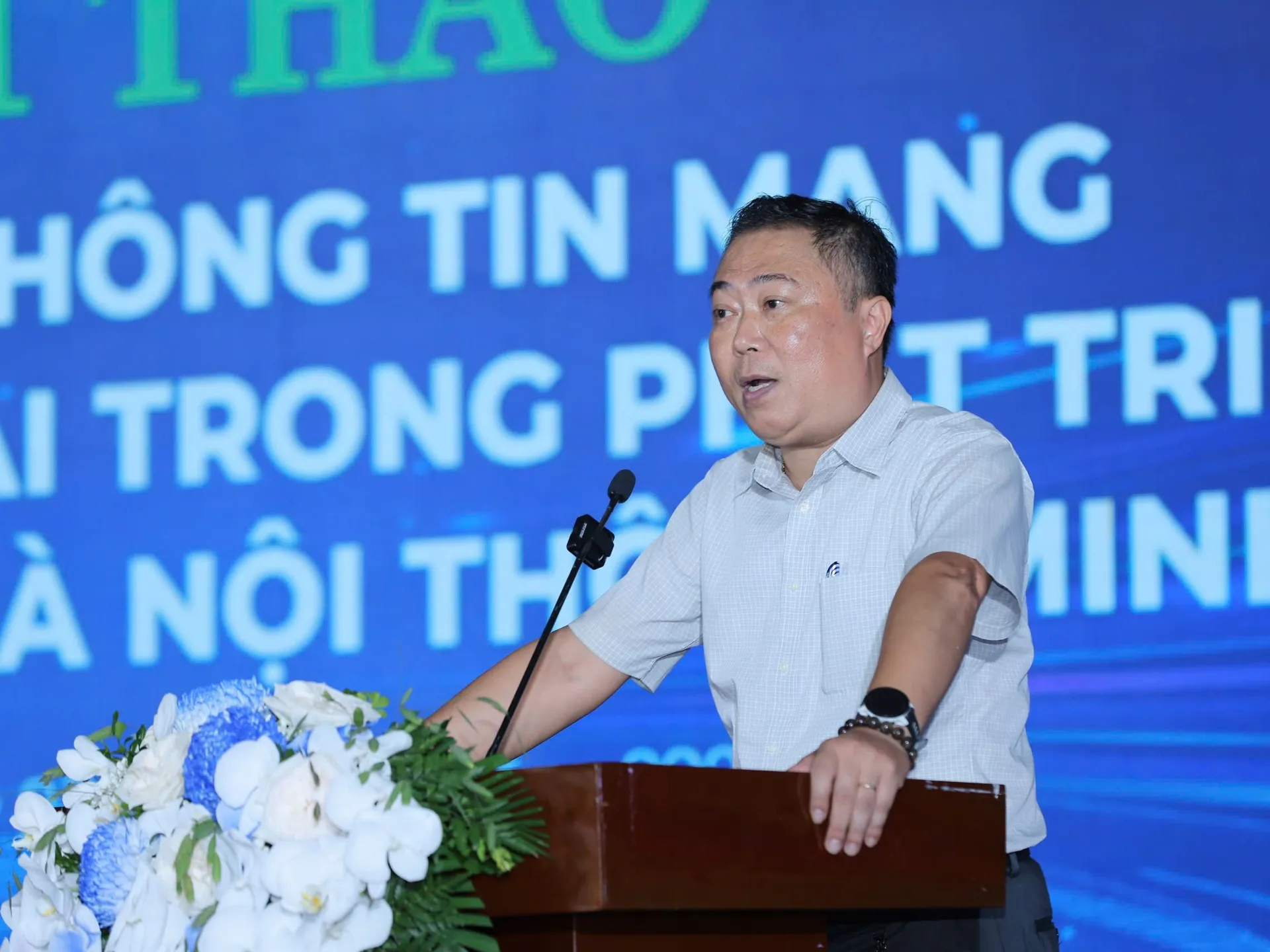 | Dinh Thien Duc, Vice Chairman of HANICT, speaks at the workshop. Photo: the Hanoi Department of Information and Communication |
