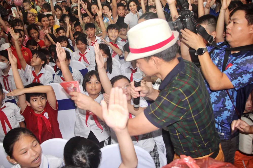 The festive atmosphere was livened up by renowned artists such as Xuan Bac and Tu Long, beauty queens, models, child singers, fashion designer Ngo Nhat Huy, and performers from the Vietnam Circus Federation.