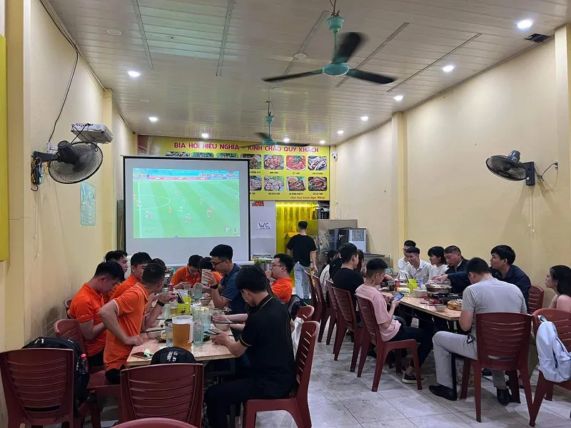 | While people are sharing drinks with friends, showing a live soccer game in a restaurant is a great way to create an exciting atmosphere and attract customers. Photo: Duy Khanh/The Hanoi Times |