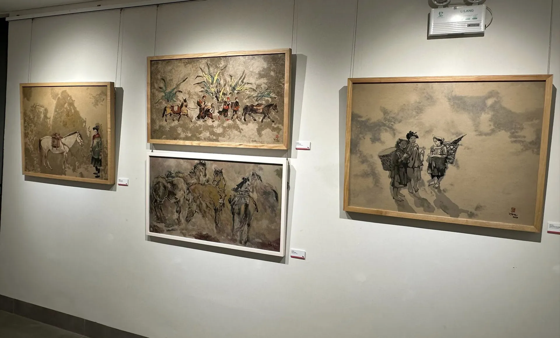 The exhibition brings together works by leading Vietnamese artists, including Trong Cat, Si Tot, Kim Dong, Do Duc, Pham Luc and Minh Tran, spanning watercolor, oil painting and traditional lacquer.